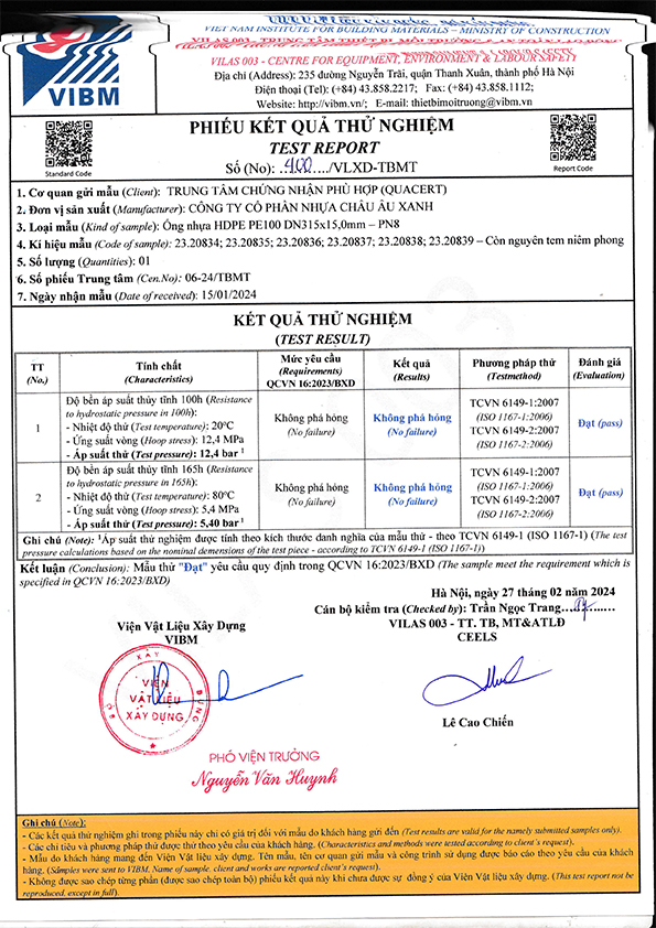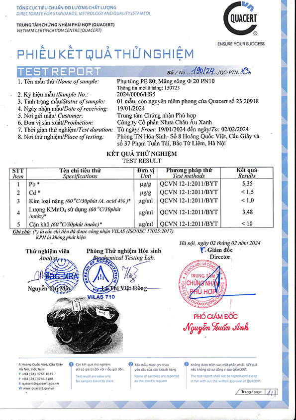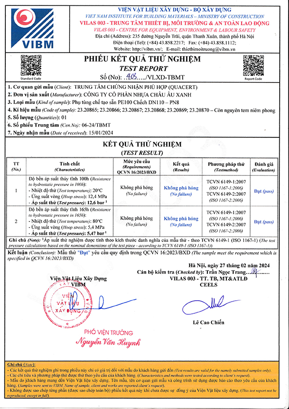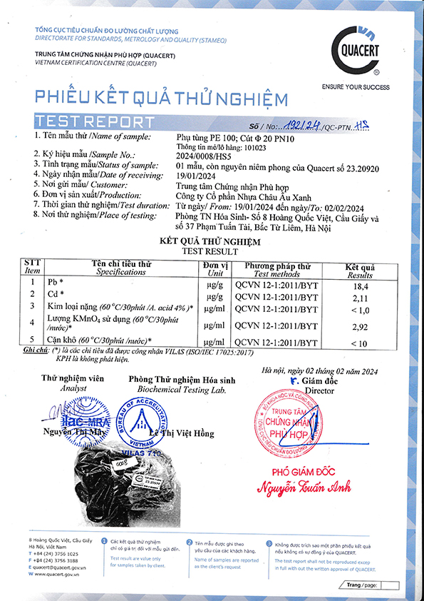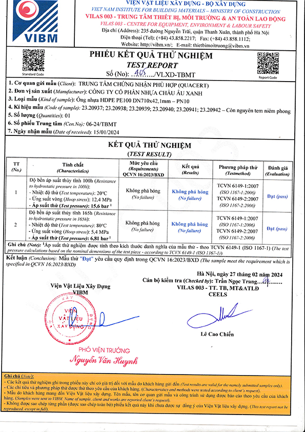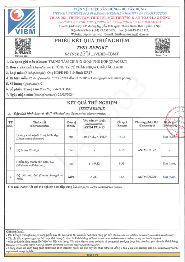 CERTIFICATE OF CONFORMITY HDPE PRODUCTS