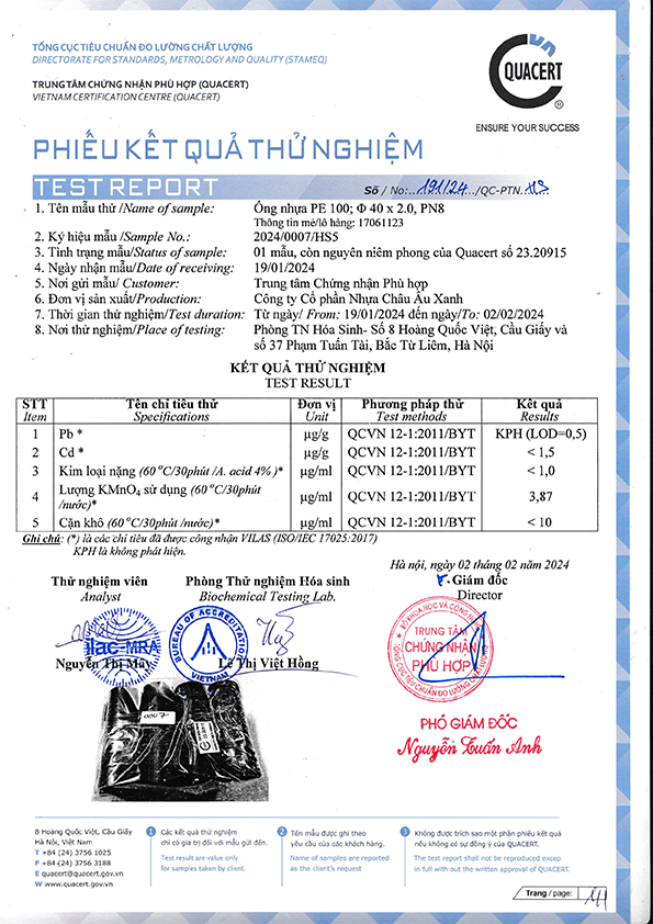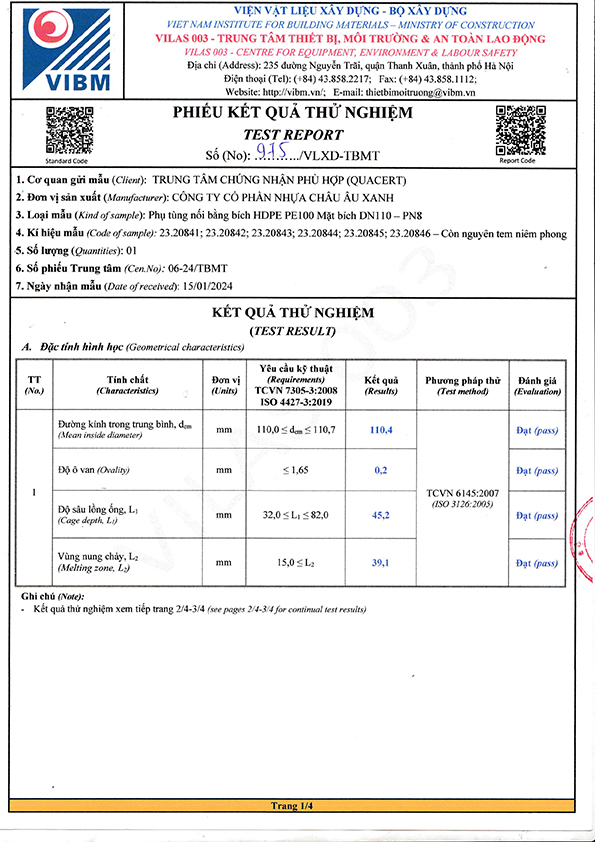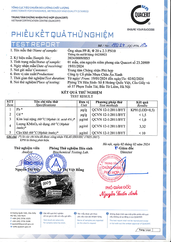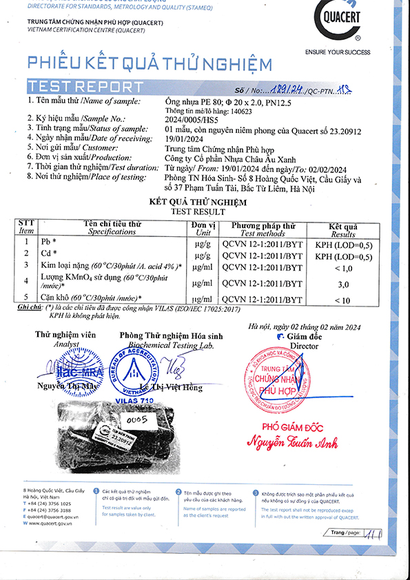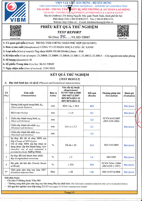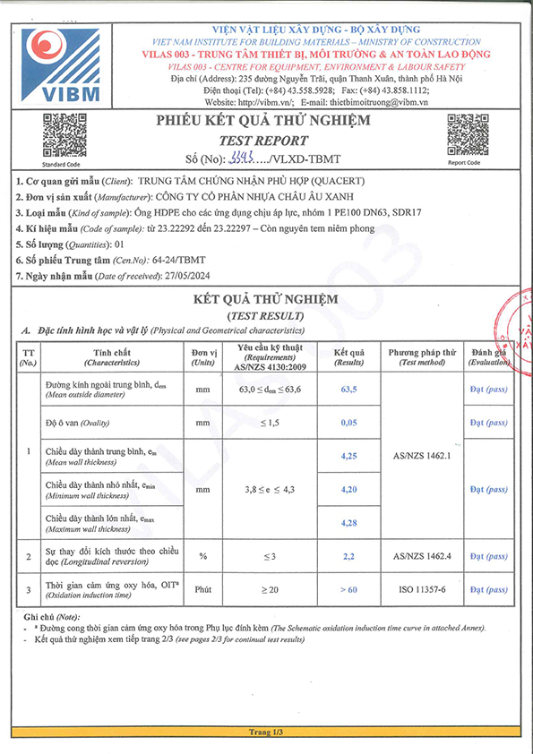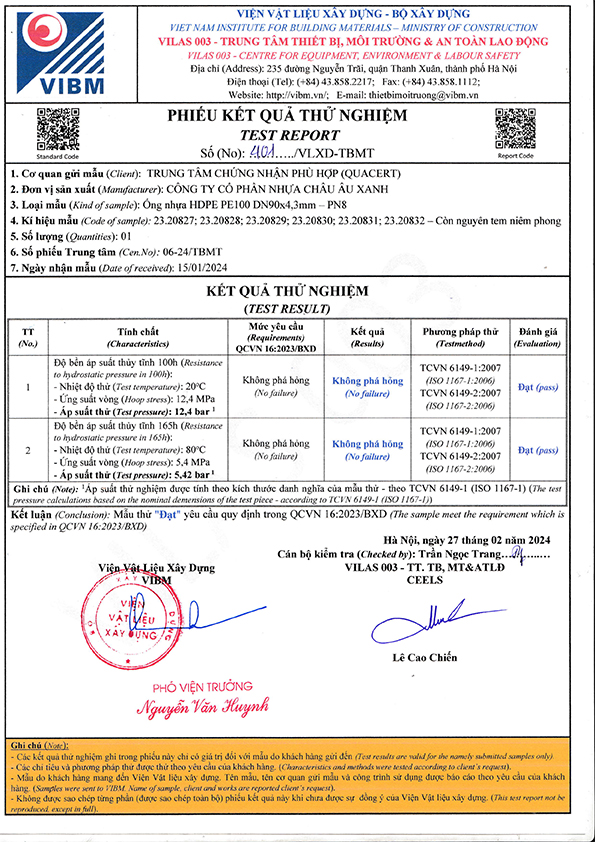 CERTIFICATE OF CONFORMITY HDPE PRODUCTS