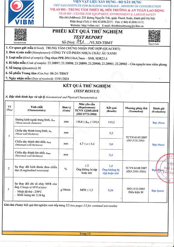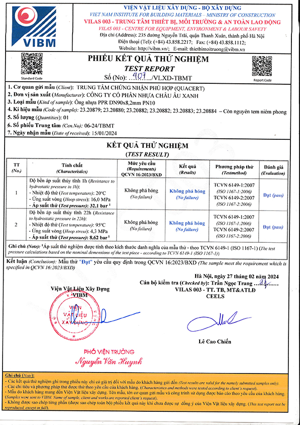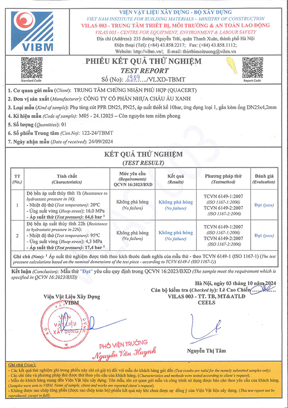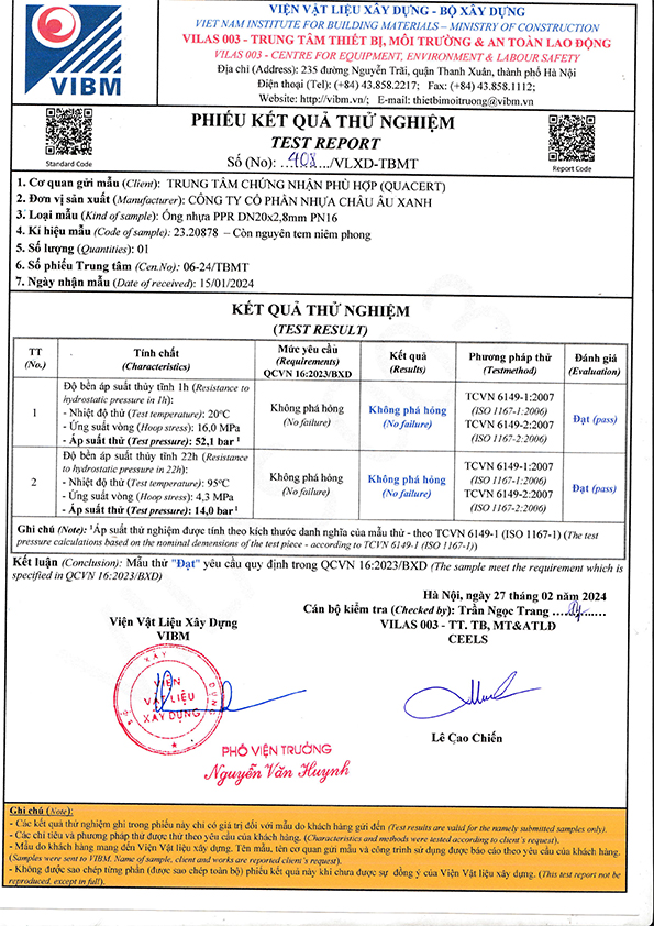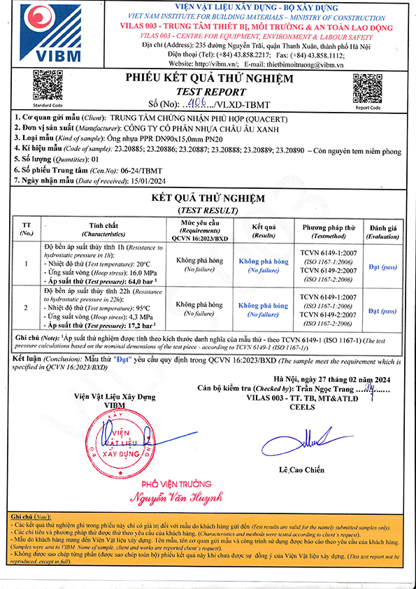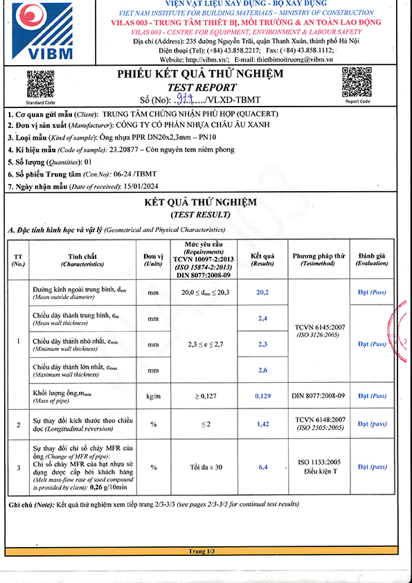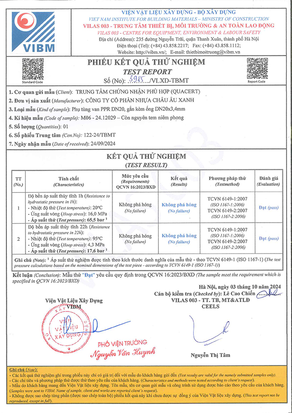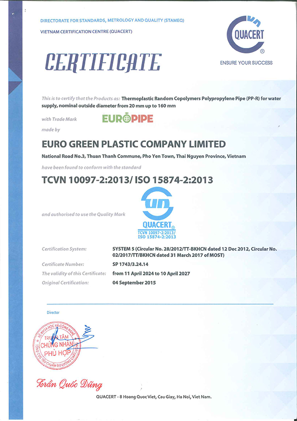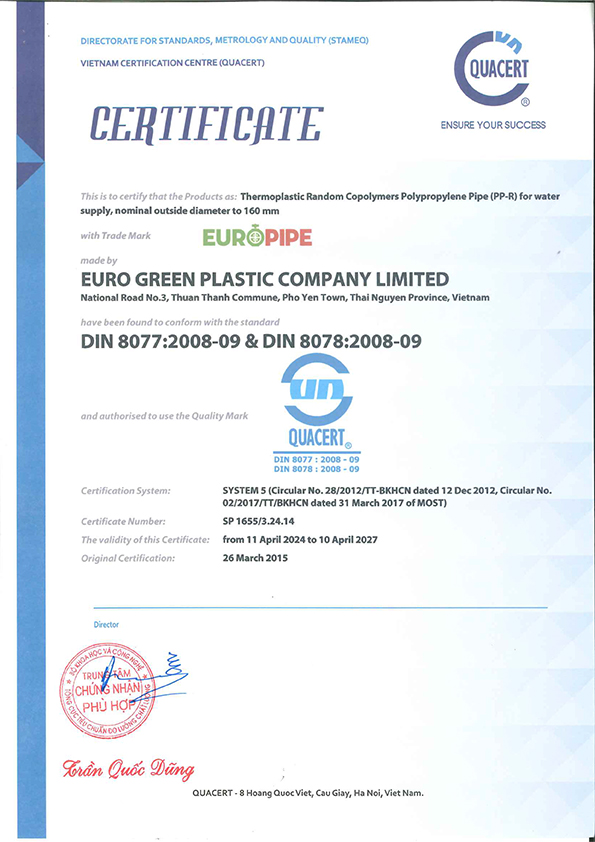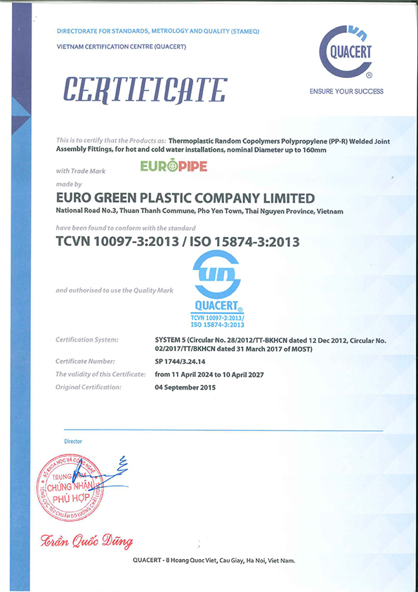 CERTIFICATE OF CONFORMITY PP-R PRODUCTS