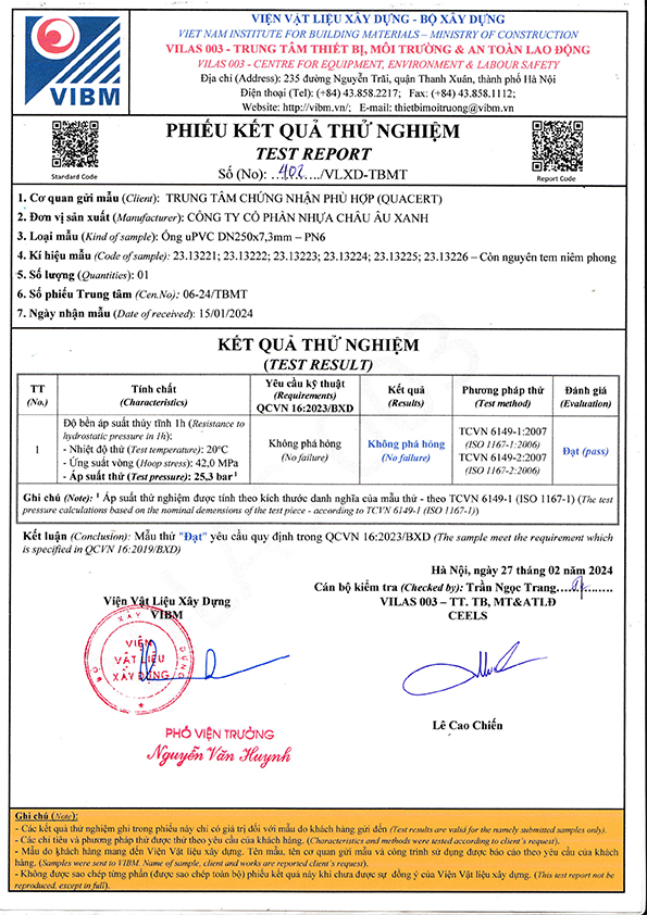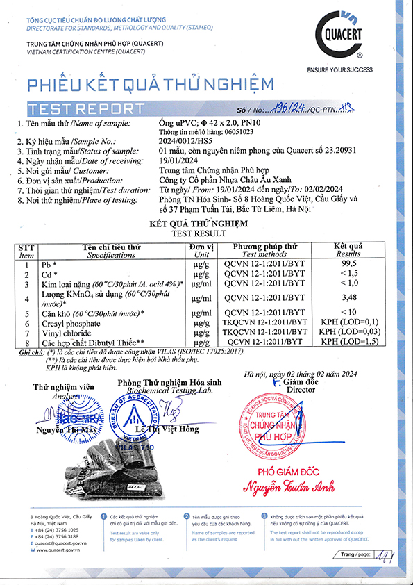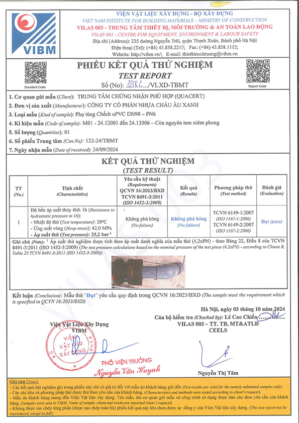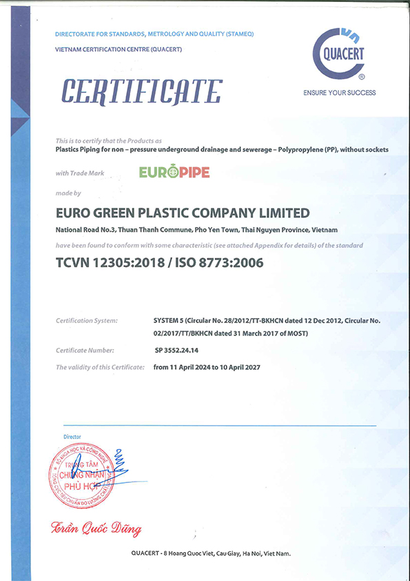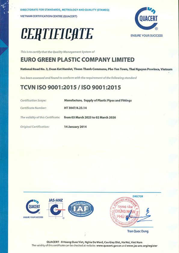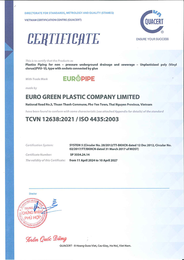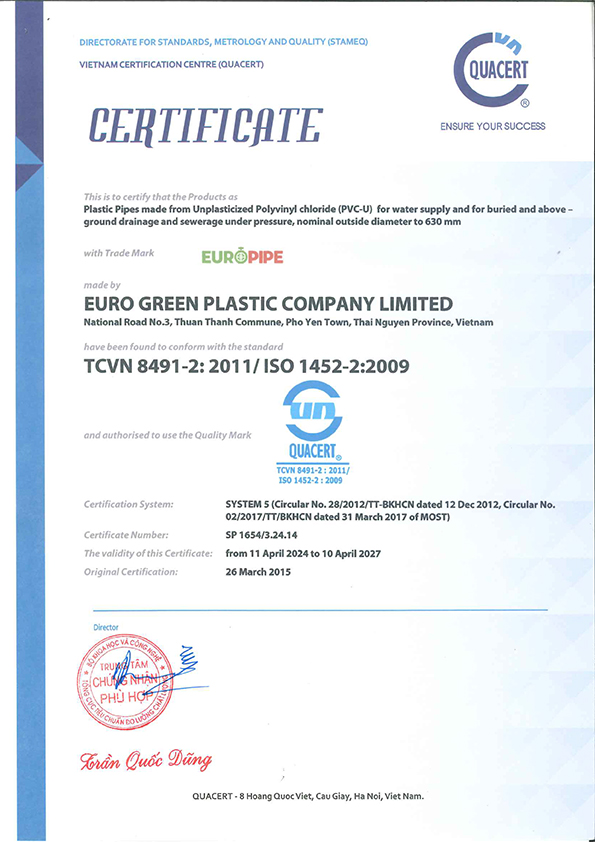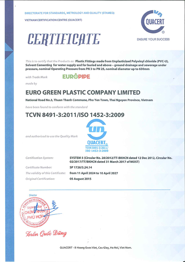 CERTIFICATE OF CONFORMITY uPVC PRODUCTS