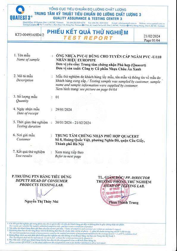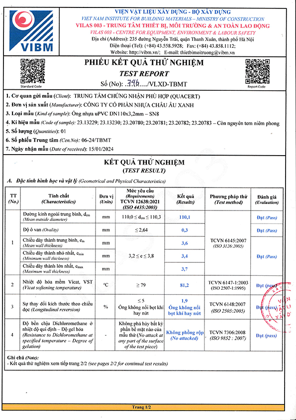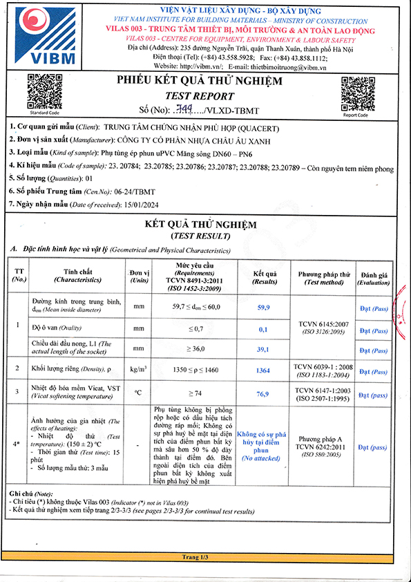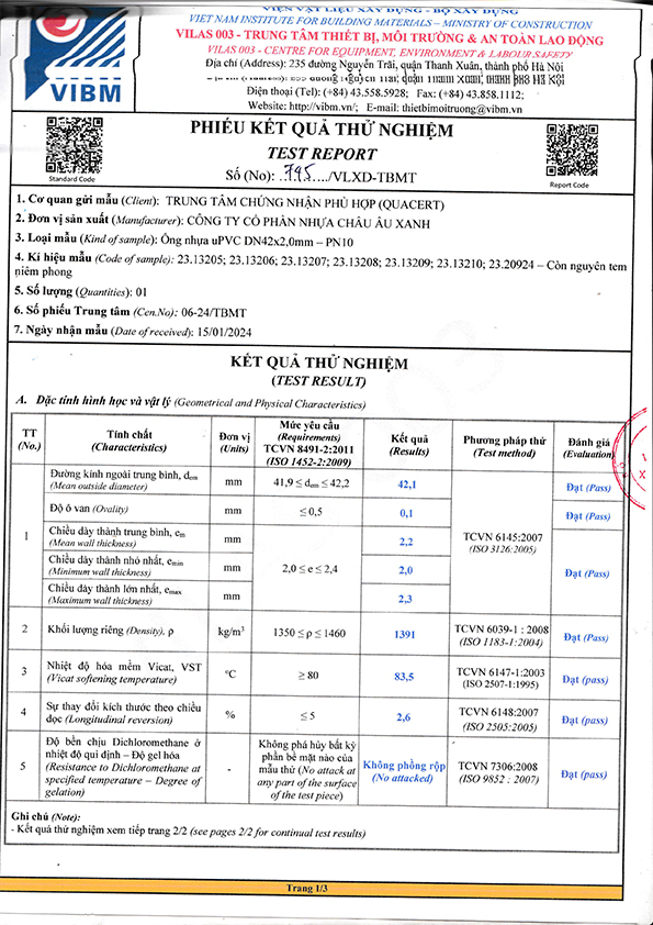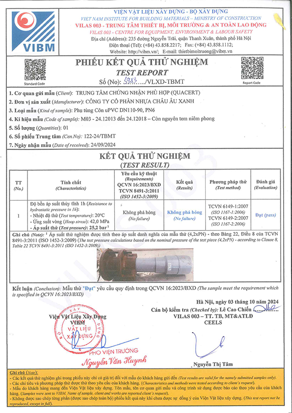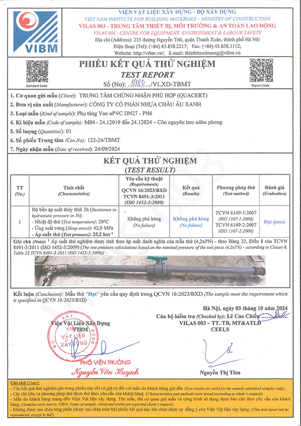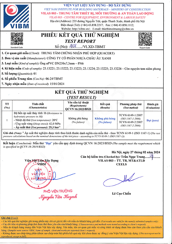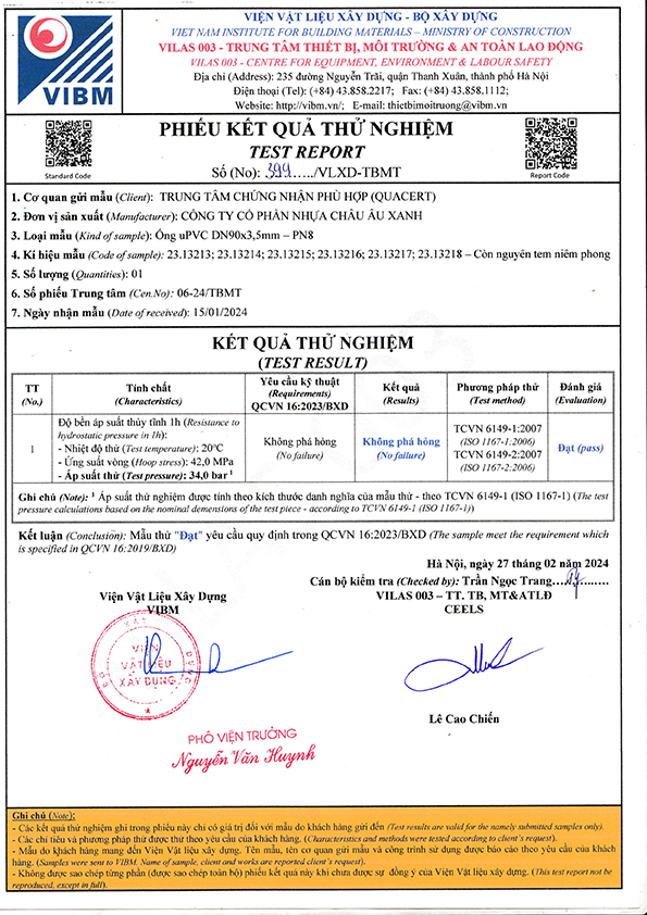 CERTIFICATE OF CONFORMITY uPVC PRODUCTS