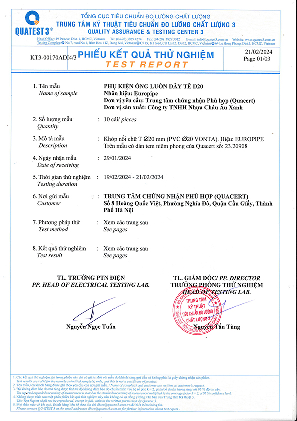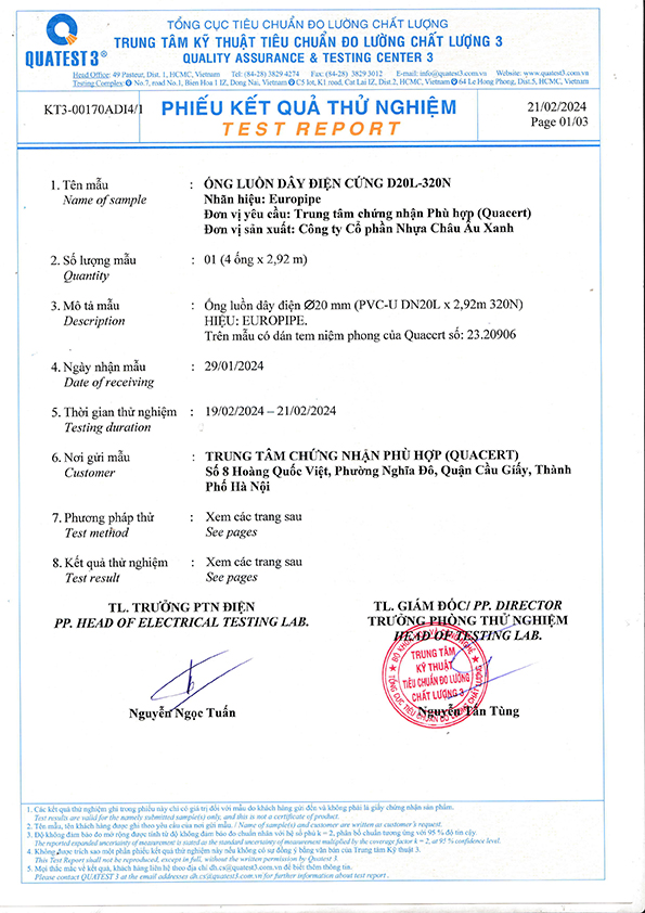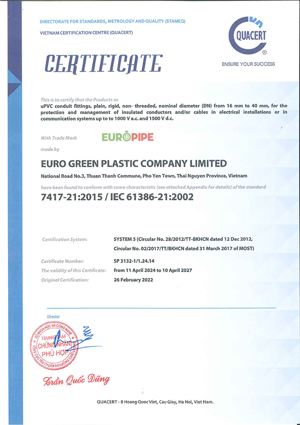 CERTIFICATE OF CONFORMITY ELECTRICAL CONDUIT PRODUCTS
