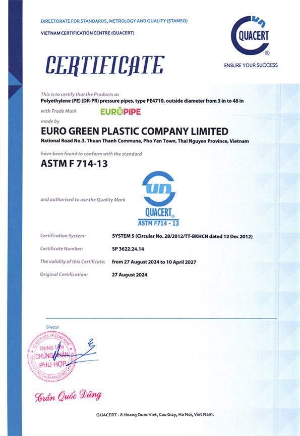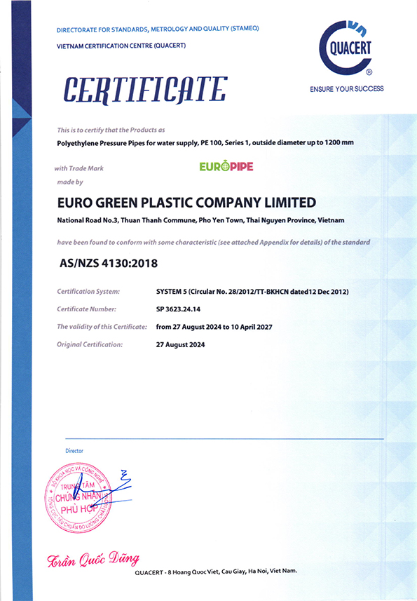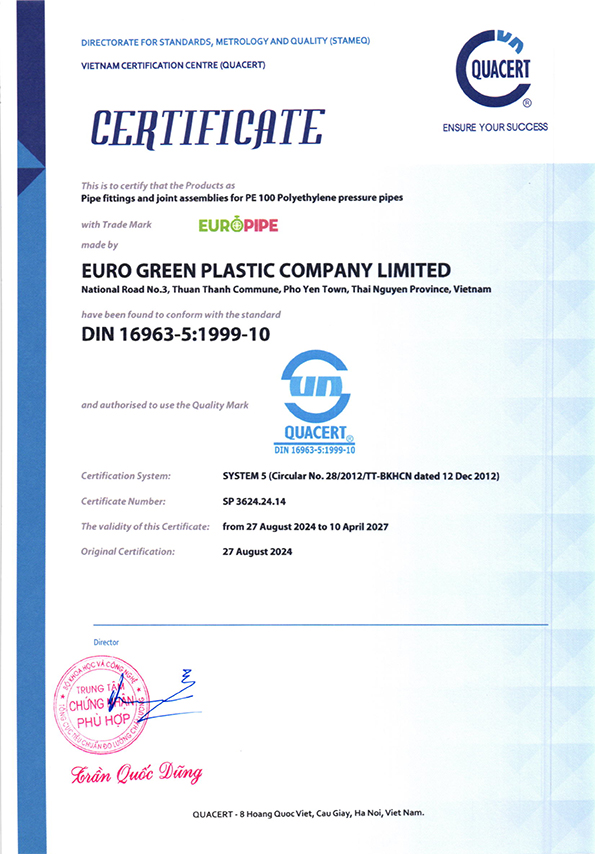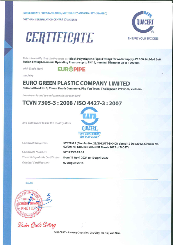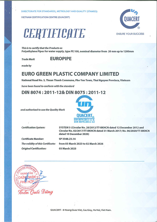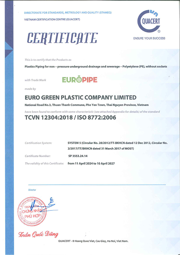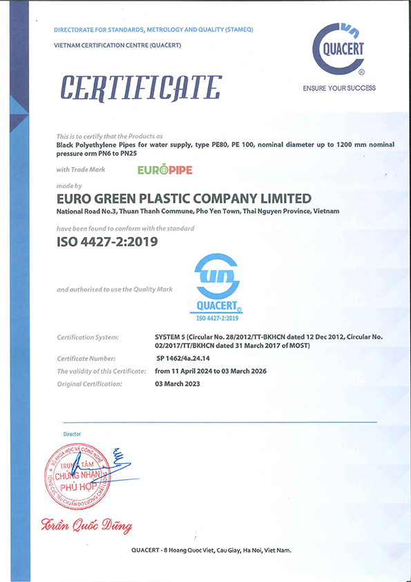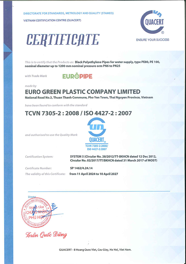 CERTIFICATE OF CONFORMITY HDPE FLEXIBLE PIPES PRODUCTS