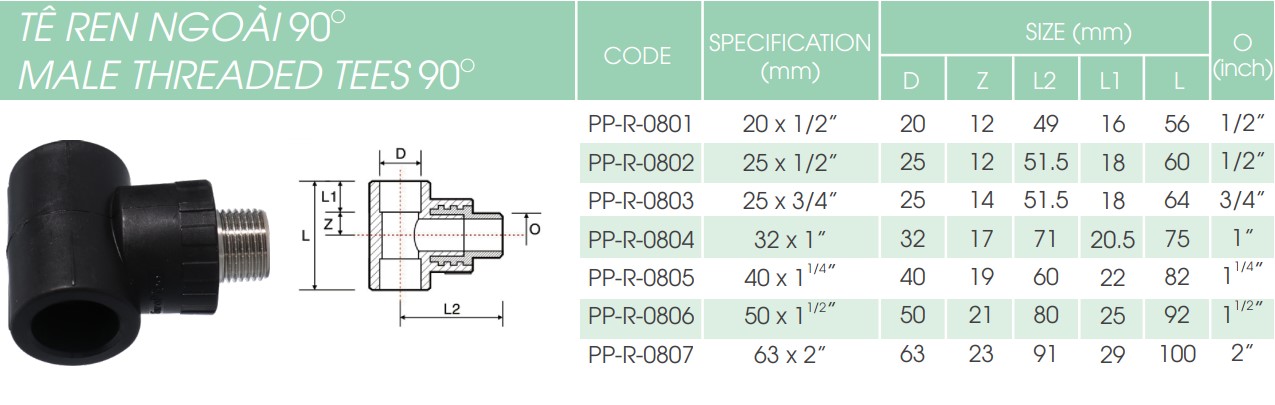 Male Threaded Tees 90