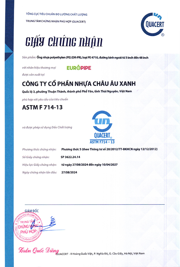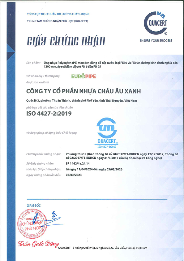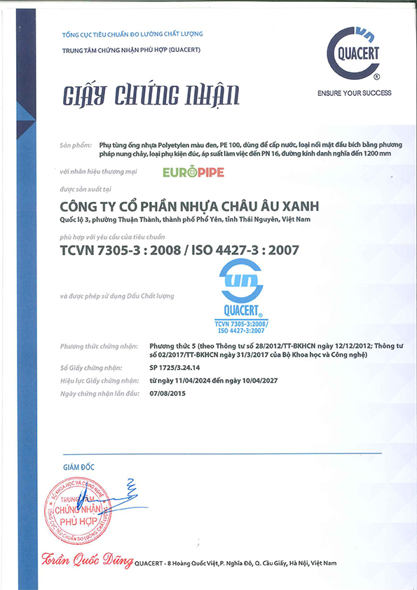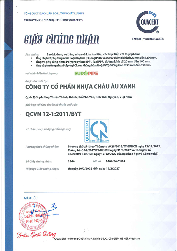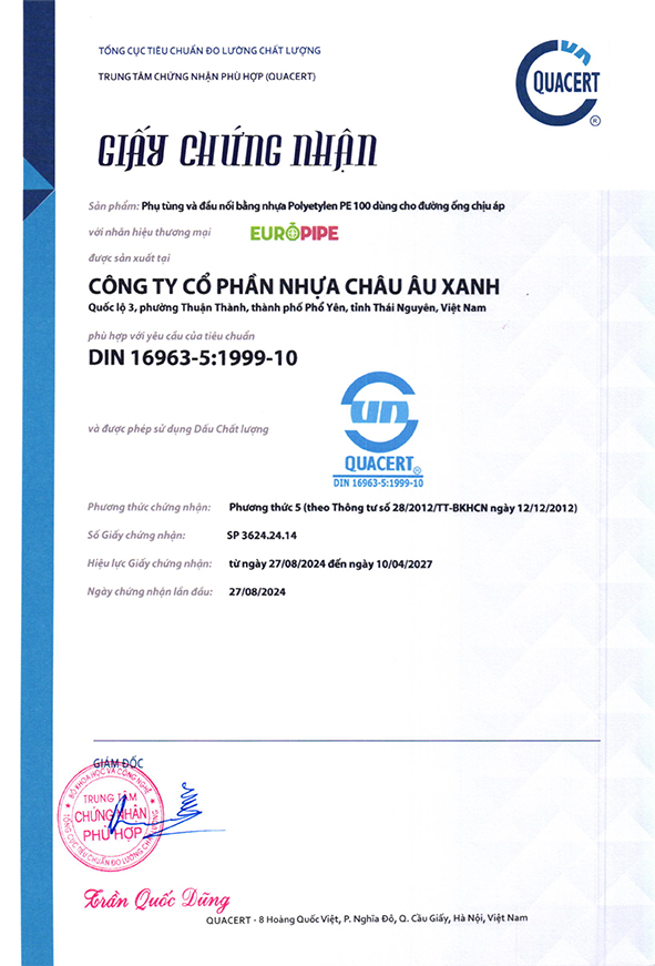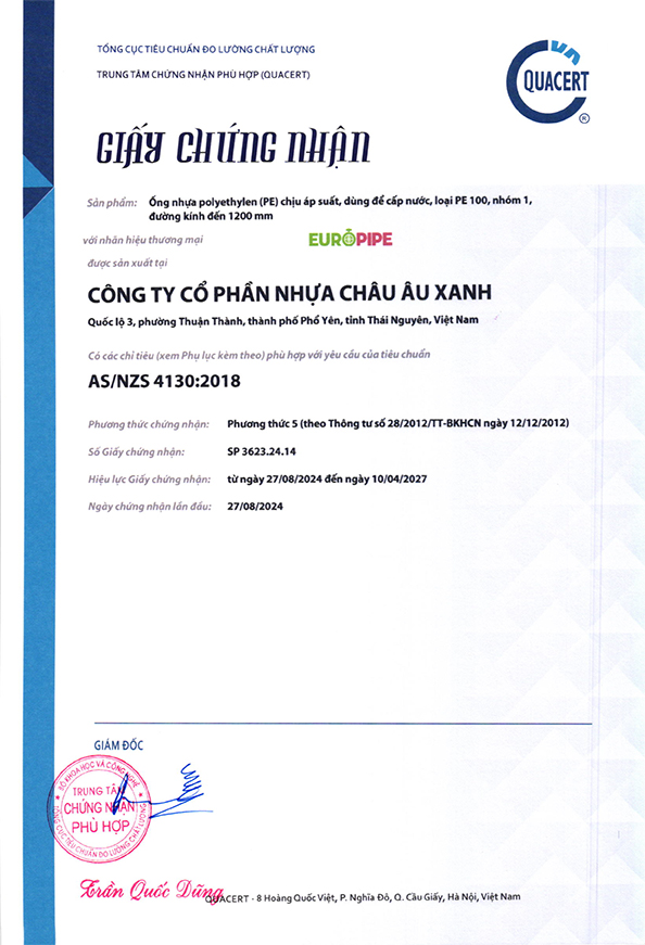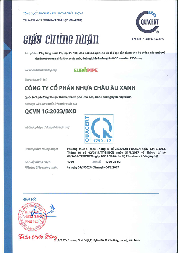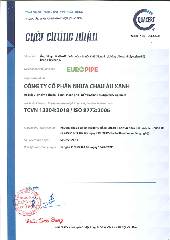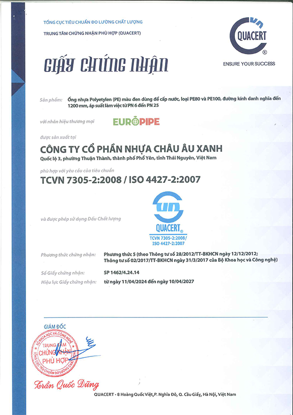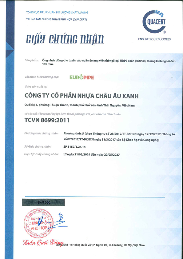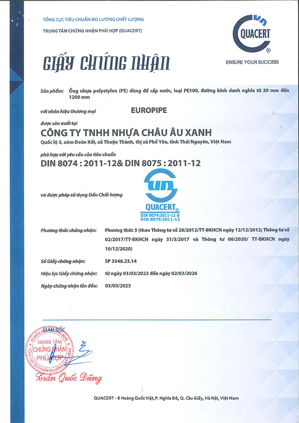 CHỨNG NHẬN HỢP CHUẨN SẢN PHẨM HDPE