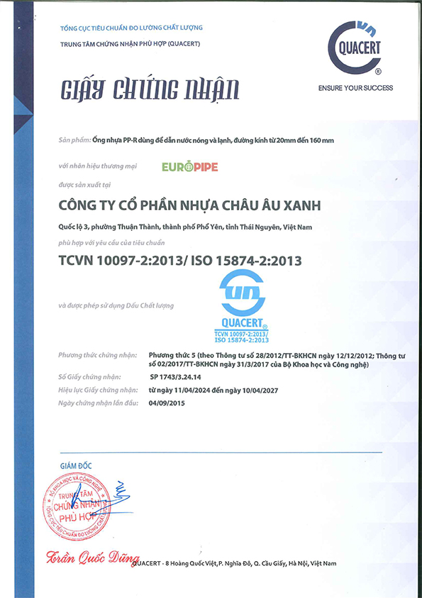 CHỨNG NHẬN HỢP CHUẨN SẢN PHẨM PPR