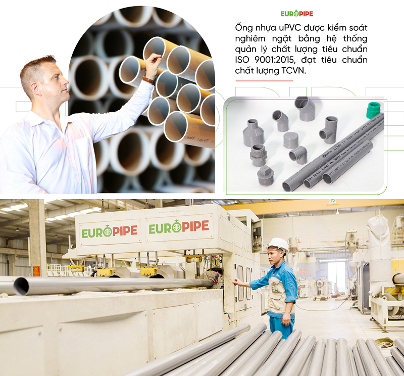 Các sản phẩm của EUROPIPE được sản xuất trên dây chuyền máy móc hiện đại theo công nghệ của CHLB Đức với nguồn nguyên liệu nguyên sinh chất lượng và an toàn được nhập khẩu từ UAE và một số nước Bắc Âu. EUROPIPE còn cam kết bảo hành sản xuất lên tới 30 năm dành cho tất cả các khách hàng.