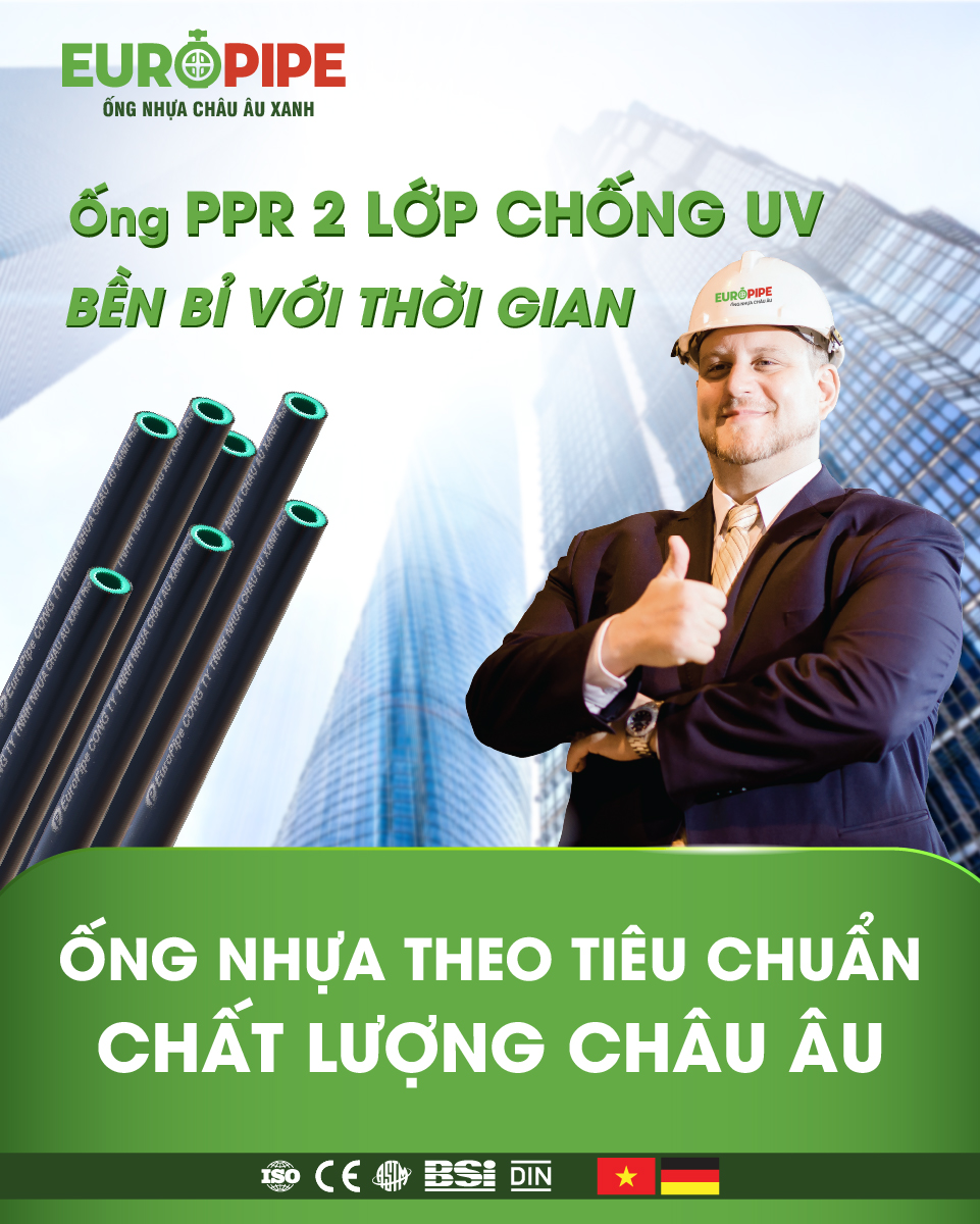 Ống nhựa PPR 2 lớp chống tia UV của Europipe là sự lựa chọn hoàn hảo cho các công trình cần sự bền bỉ, an toàn và hiệu quả về mặt chi phí. Với những đặc tính vượt trội và ứng dụng đa dạng, sản phẩm này chắc chắn sẽ mang lại sự hài lòng và giá trị lâu dài cho các nhà thầu và chủ đầu tư.