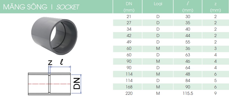 Măng sông uPVC hệ inch