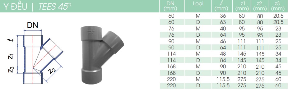 Y đều 45 uPVC hệ inch
